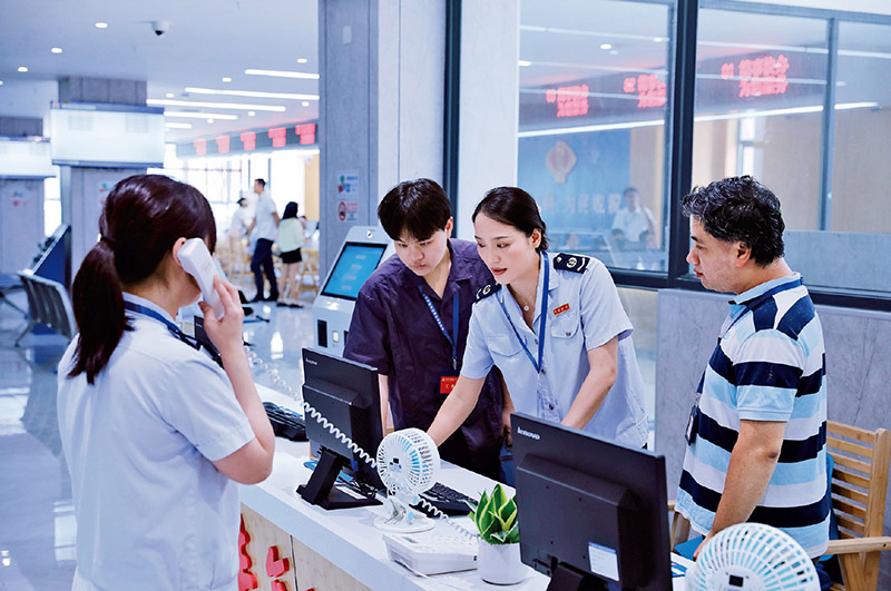 福建省永安市纪委监委紧盯窗口服务质量、工作人员作风、便民举措落实等情况开展监督检查,推动政务服务质量和水平不断提升。图为2024年8月14日,该市纪检监察干部在市政务服务中心走访了解有关情况。 中央纪委国家监委网站供图 刘文韬/摄