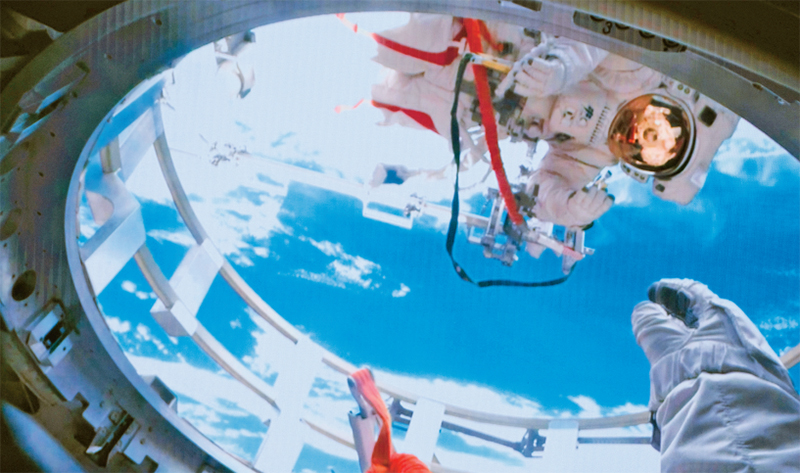 2024年,“神舟”飞天、“北斗”组网、“嫦娥”探月、“天眼”巡空,创新驱动的“中国号”巨轮向着科技强国的目标奋勇前进。图为2024年12月17日在北京航天飞行控制中心拍摄的神舟十九号航天员蔡旭哲(上)、宋令东(下)在气闸舱舱门内外工作的画面。 新华社记者 李杰/摄
