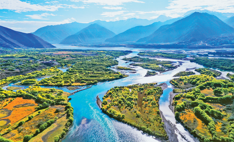 党的十八大以来,以习近平同志为核心的党中央全面加强生态文明建设,坚定不移走生态优先、绿色发展之路,美丽中国建设迈出重大步伐。图为2024年10月24日拍摄的西藏林芝雅尼国家湿地公园(无人机照片)。 新华社记者 李贺/摄