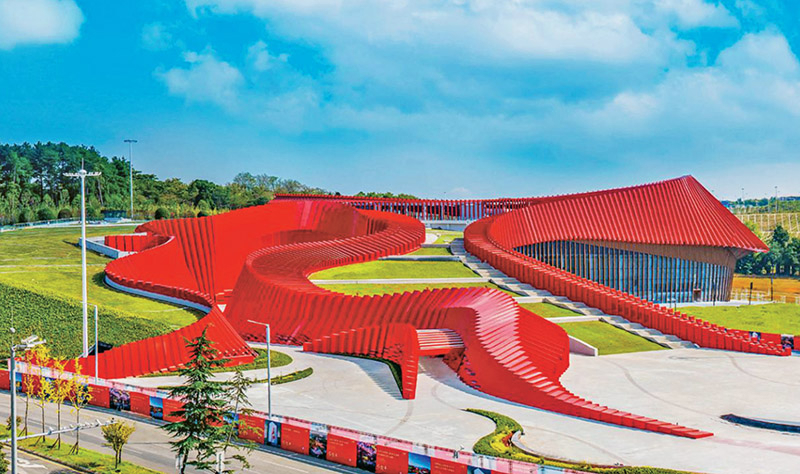 2024年10月22日,紧邻贵阳龙洞堡国际机场,以长征为主题的全域行浸式数字体验馆——贵州长征文化数字艺术馆(红飘带)正式运营,成为多彩贵州文旅“第一站”。图为贵州长征文化数字艺术馆(红飘带)。 贵州省委宣传部供图