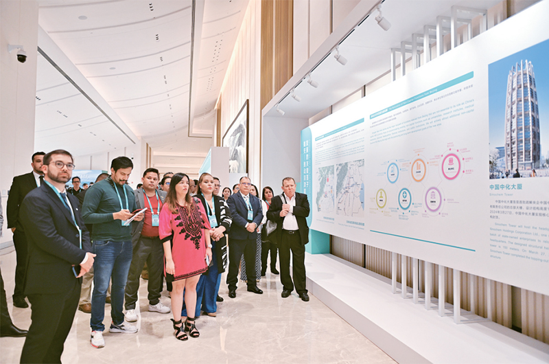 2024年6月27日,由中共中央对外联络部同中共河北省委和雄安新区党工委共同举办的“中国共产党的故事——习近平新时代中国特色社会主义思想在雄安的实践”专题宣介会在雄安新区举行,来自近40个国家的230余名政党领导人或代表现场出席会议。此次宣介会以“京津冀协同发展下的千年大计”为主题,通过雄安新区的故事,展现中国共产党贯彻新发展理念、推动高质量发展、全面推进中国式现代化建设的生动实践和突出成就。图为当日与会嘉宾在雄安会展中心内参观。 新华社记者 牟宇/摄