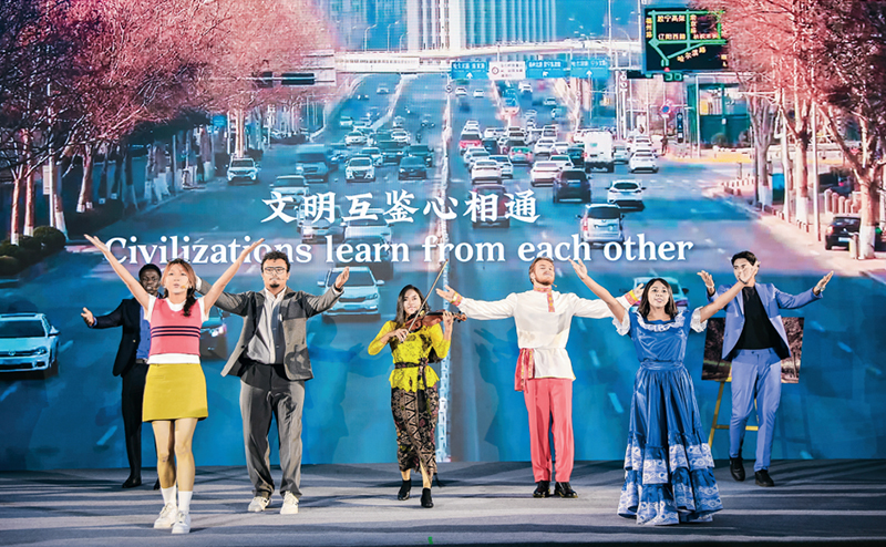 2024年10月27日,以“读懂中华文明,携手促进世界现代化”为主题的第二届世界汉学家大会在福建省南平市开幕。会议由中国国际交流协会和福建省人民政府共同举办,来自60个国家的200余名中外代表参加。图为外国青年汉学家参加开幕式“融通中外文明的使者”主题展示。 中联部供图