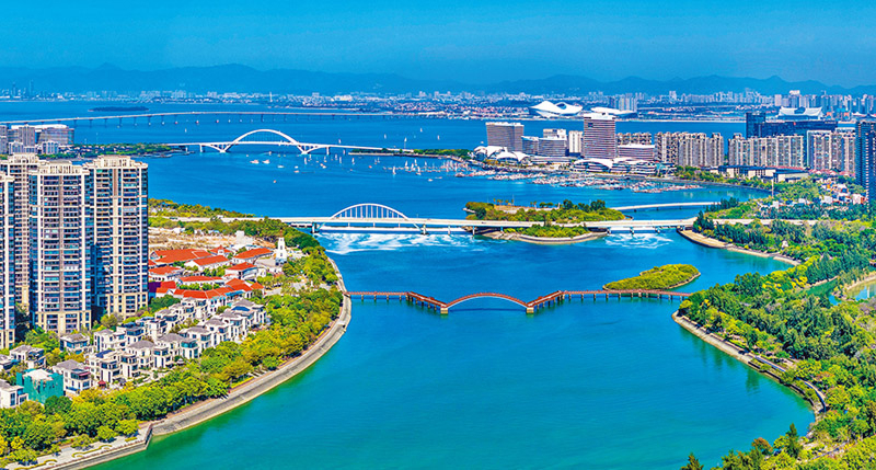 2002年6月,时任福建省委副书记、省长的习近平同志在厦门调研时提出“提升本岛、跨岛发展”的重大战略。厦门深入贯彻这一战略,持续推进五缘湾片区生态修复与综合开发,该片区已发展成为以现代服务业为主导的城市新区。图为2024年12月12日拍摄的五缘湾。 厦门日报供图